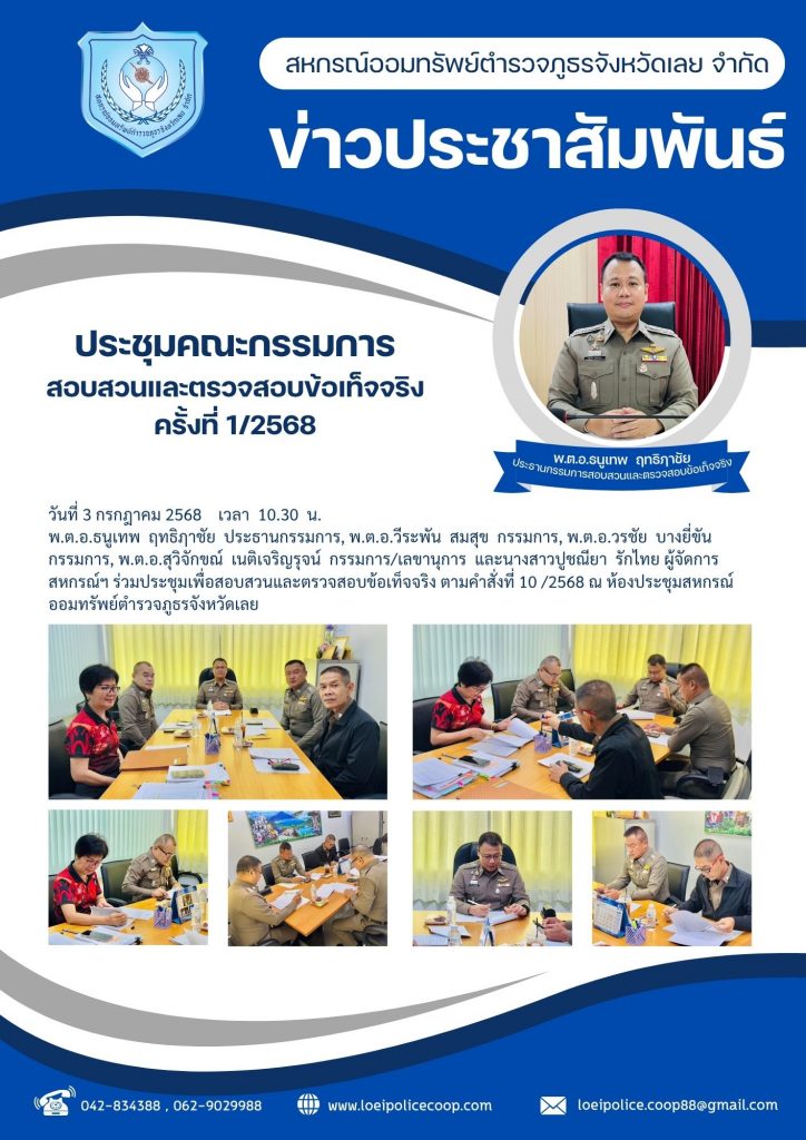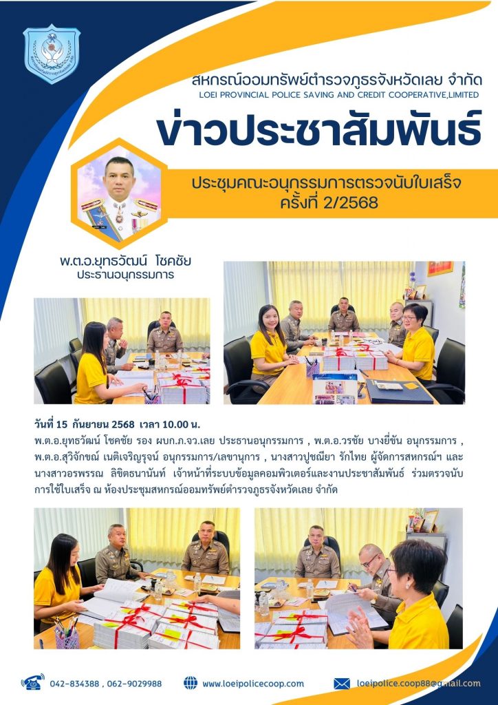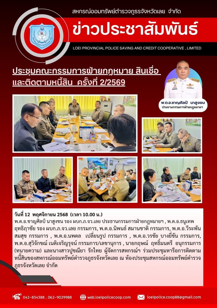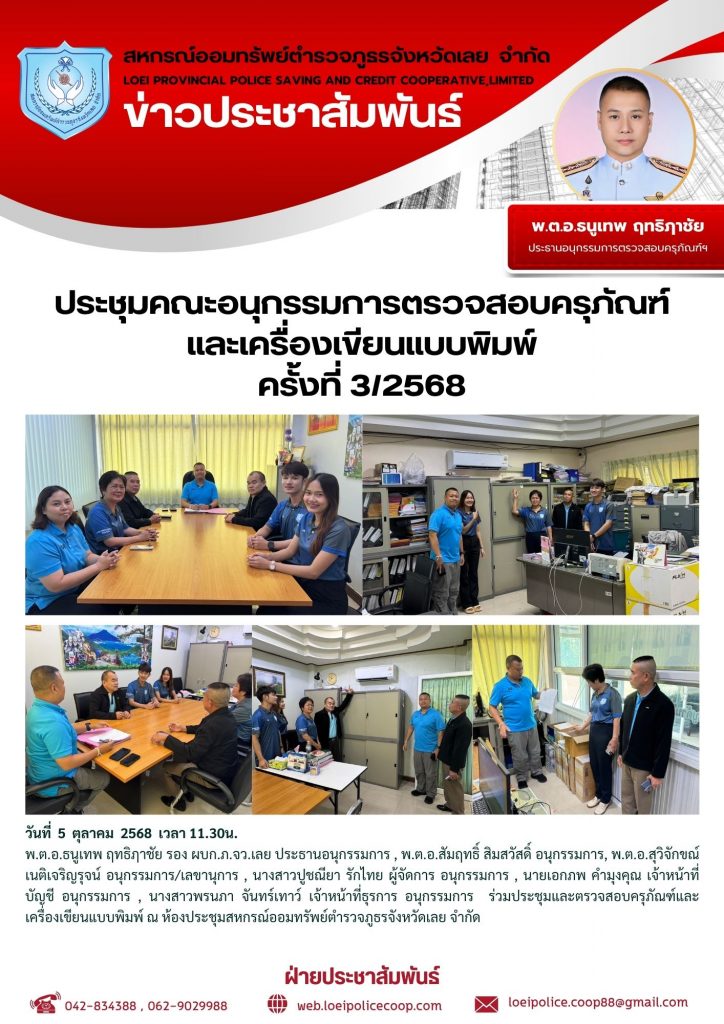 🔺พ.ต.อ.ธนาวัชร ดีบุญมี ณ ชุมแพ รอง ผบก.ภ.จว.เลย ประธานกรรมการเงินกู้ ,พ.ต.อ.สมบุญพล คำตา,พ.ต.อ.ยศวัจน์ แก้วสืบธัญนิจ,พ.ต.อ.นพดล เปลี่ยนรูป,พ.ต.อ.สุวิจักขณ์ เนติเจริญรุจน์ คณะกรรมการเงินกู้ และนางสาวปูชณียา ผจก.สหกรณ์ฯ