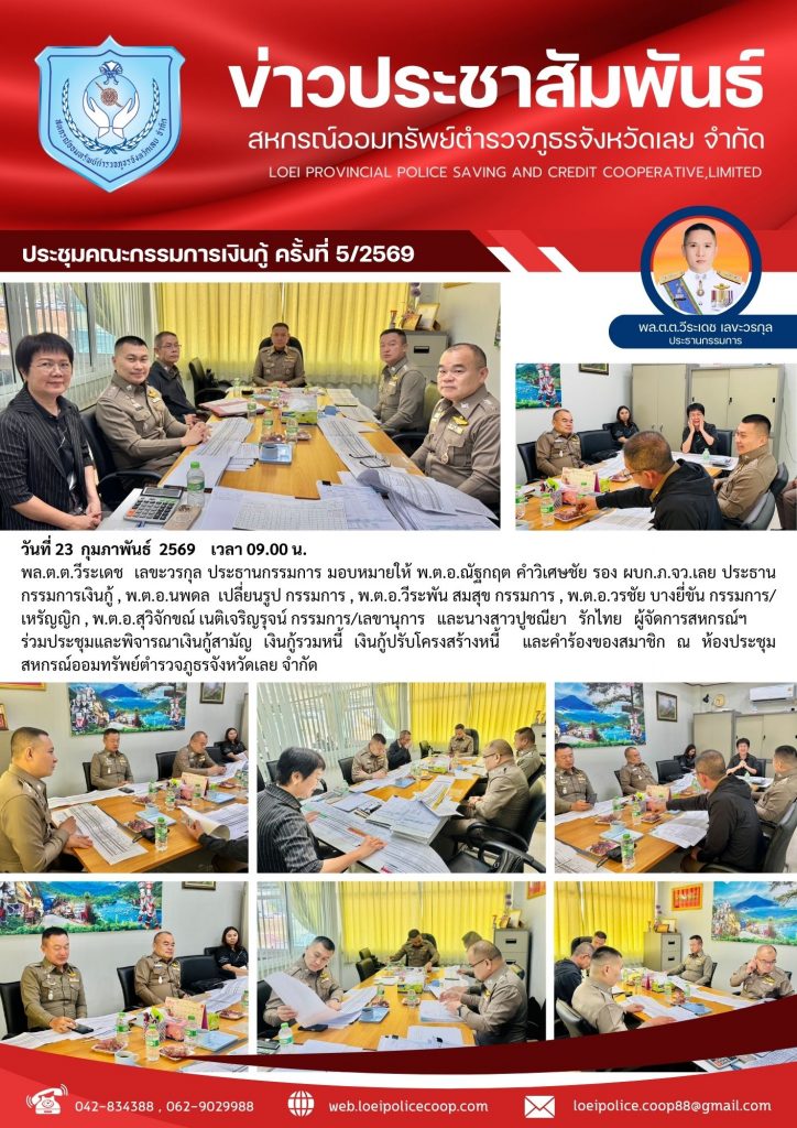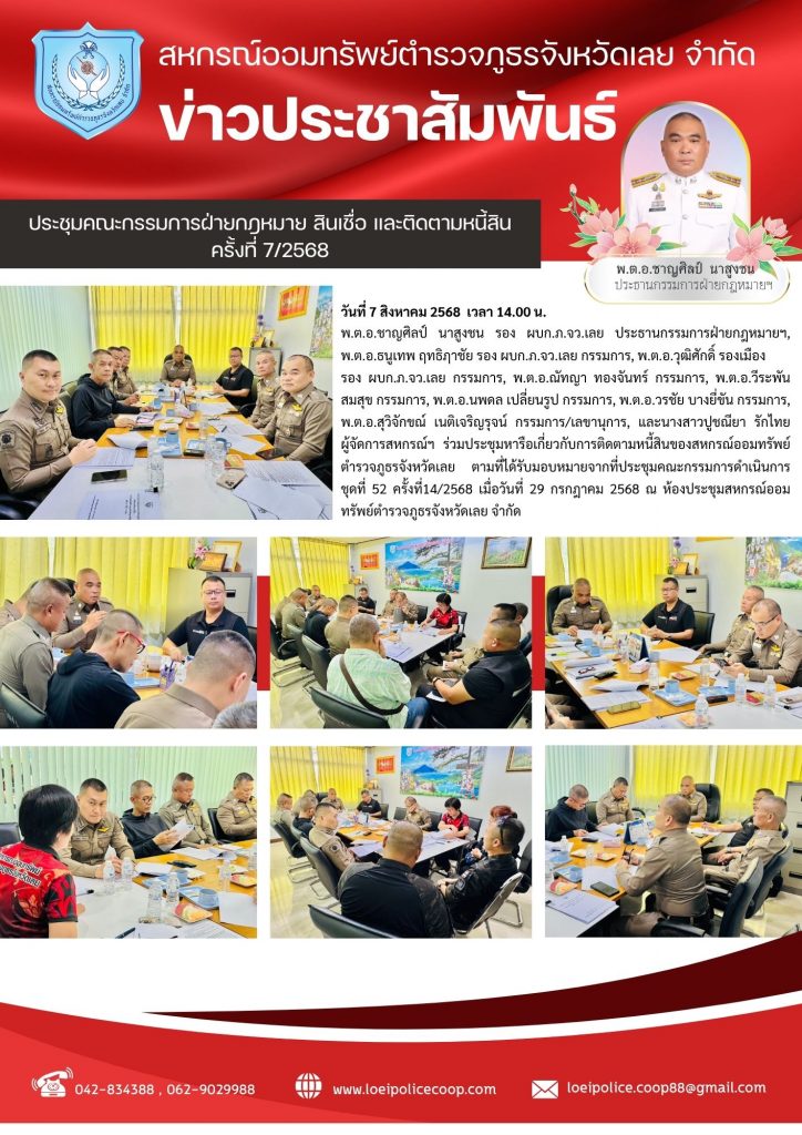 🔺พ.ต.อ.ธนาวัชร ดีบุญมี ณ ชุมแพ รอง ผบก.ภ.จว.เลย ประธานกรรมการเงินกู้ ,พ.ต.อ.สมบุญพล คำตา,พ.ต.อ.ยศวัจน์ แก้วสืบธัญนิจ,พ.ต.อ.นพดล เปลี่ยนรูป,พ.ต.อ.สุวิจักขณ์ เนติเจริญรุจน์ คณะกรรมการเงินกู้ และนางสาวปูชณียา รักไทย ผจก.สหกรณ์ฯ
