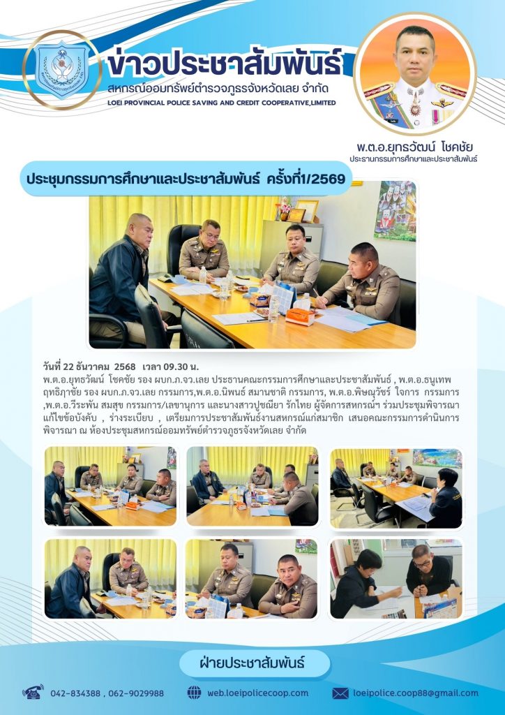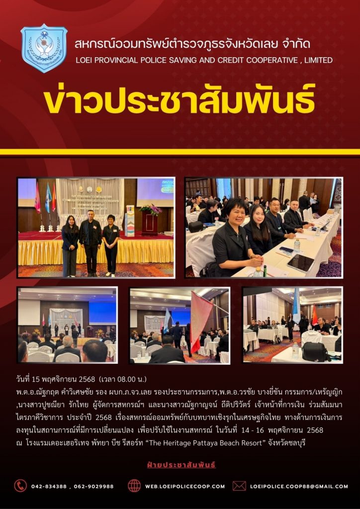 🔺เข้าร่วมประชุม โครงการจัดทำแผนกลยุทธ์ สหกรณ์ออมทรัพย์ตำรวจภูธรจังหวัดเลย จำกัด ปี 2568-2572 เพื่อร่วมดำเนินการจัดทำแผนกลยุทธ์ของสหกรณ์ครั้งที่ 2 ดำเนินการกำหนดปรัชญา (Philosophy) วิสัยทัศน์ (Vision) พันธกิจ(Mission) ค่านิยมองค์กร (Value) พร้อมทั้งได้กำหนดแผนกลยุทธ์ของสหกรณ์ระยะเวลา 5 ปี (พ.ศ.2568 – 2572) โดยร่วมกันพิจารณากำหนดโครงการต่างๆ พร้อมทั้งตัวชี้วัด และกำหนดแนวทางในการพัฒนาสหกรณ์เพื่อให้บรรลุเป้าหมายตามแผนกลยุทธ์ของสหกรณ์ที่ได้จัดทำขึ้น และเพื่อเสริมสร้างศักยภาพการบริหารจัดการสหกรณ์ให้มีประสิทธิภาพสูง บุคลากรมีความเป็นมืออาชีพในการบริหารจัดการองค์กรสหกรณ์มีความเข้มแข็ง มีเสถียรภาพ มีการสร้างธรรมาภิบาลด้วยเทคโนโลยีสารสนเทศและนวัตกรรมที่สนับสนุนการป้องกัน และแก้ไขข้อบกพร่อง การทุจริตในสหกรณ์ และเพื่อพัฒนาคุณภาพชีวิตของสมาชิกสหกรณ์ให้มีความมั่นคงยั่งยืน สามารถพึ่งพาตนเองได้ตลอดจนมีรายได้เพิ่มขึ้นค่าใช้จ่ายลดลง