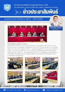 🔺 พล.ต.ต.พงพิพัฒน์ ศิริพรวิวัฒน์ ผบก.ภ.จว.เลย เข้าร่วมประชุมใหญ่วิสามัญสหกรณ์ออมทรัพย์ตำรวจภูธรจังหวัดเลย จำกัด