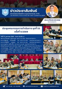 🔺พล.ต.ต.สุรชัย สังขพัฒน์ ผบก./ประธานกรรมการ มอบหมายให้ พ.ต.อ.จักรภพ ท้าวฤทธิ์,พ.ต.อ.วสันต์ เกศะรักษ์ รอง ผบก.ฯ/รองประธานกรรมการ ดำเนินการประชุมคณะกรรมการดำเนินการ พร้อมด้วยคณะกรรมการและเจ้าหน้าที่สหกรณ์ฯ